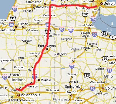 nearing Indianapolis just after 7 PM. I knew that I would
